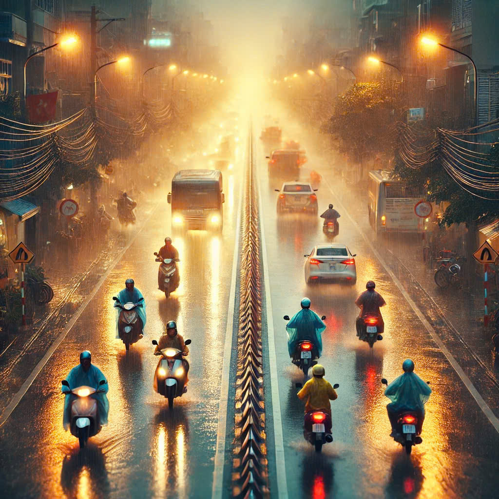 Tôi không thể che mưa cho bố mẹ, không thể làm cơn mưa dừng lại, cũng chẳng thể dọn sạch dòng xe đang tắc nghẽn. Tôi chỉ có thể đợi – với lòng mong mỏi rằng hôm nay mưa sẽ tạnh sớm, rằng đoạn đường ấy sẽ bớt phần vất vả.