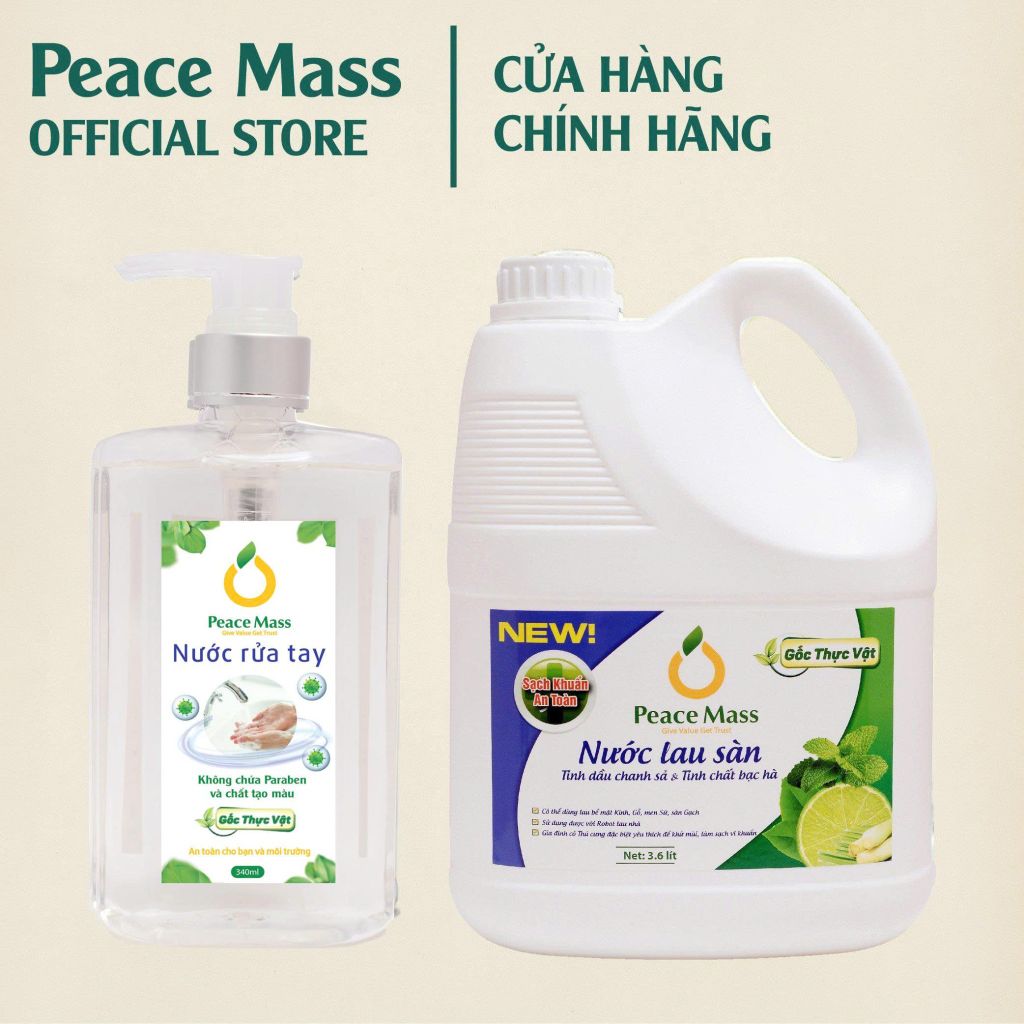 - Nước rửa tay Gốc Thực Vật Peace Mass với thành phần dưỡng ẩm dịu nhẹ, vitamin B5 giúp làm làm sạch da tay, khử mùi, hỗ trợ ngăn ngừa vi khuẩn gây bệnh.