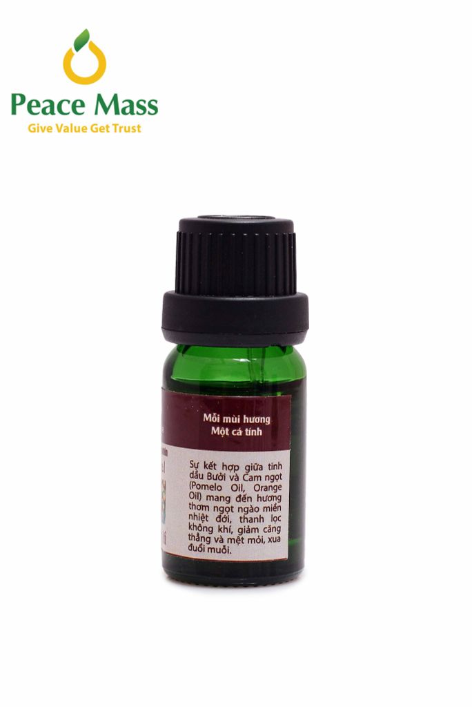 Tinh dầu Miền nhiệt đới Peace Mass dùng cho máy xông 10ml là sự kết hợp giữa tinh dầu Bưởi và Cam ngọt (Pomelo Oil, Orange Oil) mang đến hương thơm ngọt ngào miền nhiệt đới, thanh lọc không khí, giảm căng thẳng và mệt mỏi, xua đuổi muỗi.